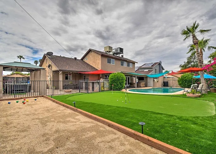 Hot Tub, Heated Pool And More! Relaxing Phoenix Home est situé à 7 km des Castles N' Coasters et propose de la randonnée et du mini-golf aux clients actifs. Dotée du Wi-Fi et d'un parking, cette villa de 4 chambres se trouve à environ 10 minutes en voiture de Freeway Plaza Shopping Center.